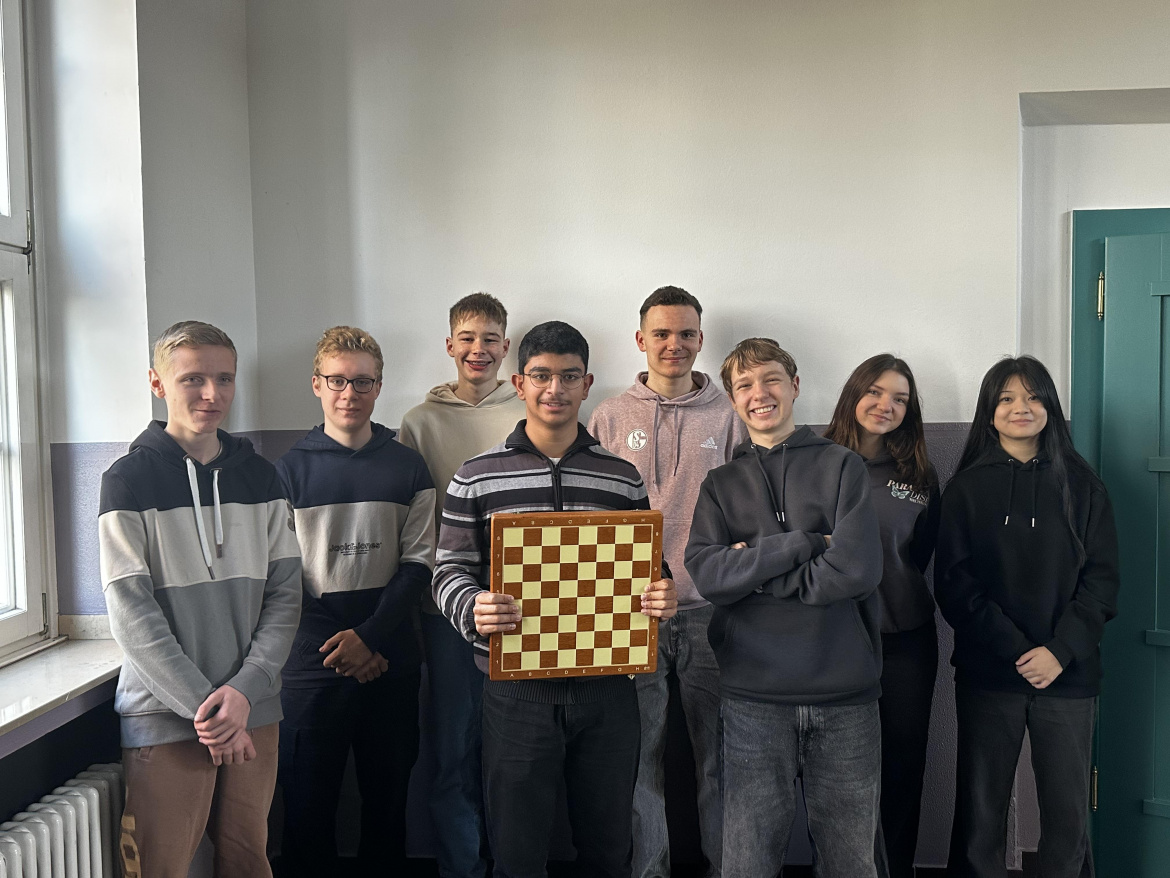 Was ist der beste Zug der Weißen? Welcher Zug der Schwarzen führt zu einem Materialgewinn? Diesen und weiteren Fragen durften sich acht Schülerinnen und Schüler der Schach-AG stellen. Als Teilnehmer des Schachwettbewerbs „Schachpferdchen“, der zeitgleich in vielen europäischen Ländern stattfindet, hatten sie 60 Minuten Zeit, bis zu 30 Schachrätsel zu lösen. Mal galt es, den besten Zug zu finden, bei den anspruchsvolleren Aufgaben musste sogar die Zugzahl bis zum Matt errechnet werden. Konzentration und Vorstellungsvermögen war daher besonders gefragt. Das beste Ergebnis erreichte dabei Tim Zimmer aus der EF. In seiner Kategorie belegte er mit einer überdurchschnittlichen Leistung deutschlandweit den 58. Platz.
