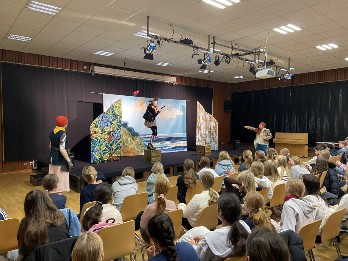Für die Jahrgangsstufe 6 wurde das Stück „The Tiger of the Seas“ von Peter Griffith aufgeführt, das die Schülerinnen und Schüler mit Humor und Abenteuer begeisterte. Die Oberstufe sah das Stück „The Great Gatsby“, einen Klassiker der amerikanischen Literatur, in dem die Illusion des „American Dreams“ offensiv in Frage gestellt wird. Beide Stücke waren nicht nur unterhaltsam, sondern boten eine tolle Gelegenheit, die englische Sprache auf eine ganz andere Art und Weise zu erleben.