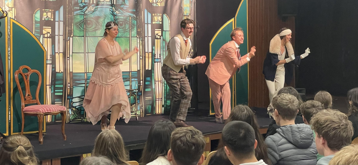 Am 11. November 2025 gastierte das englischsprachige White Horse Theatre an unserer Schule. Die vierköpfige Theatergruppe präsentierte zwei spannende und unterhaltsame Theaterstücke in unserer Aula.